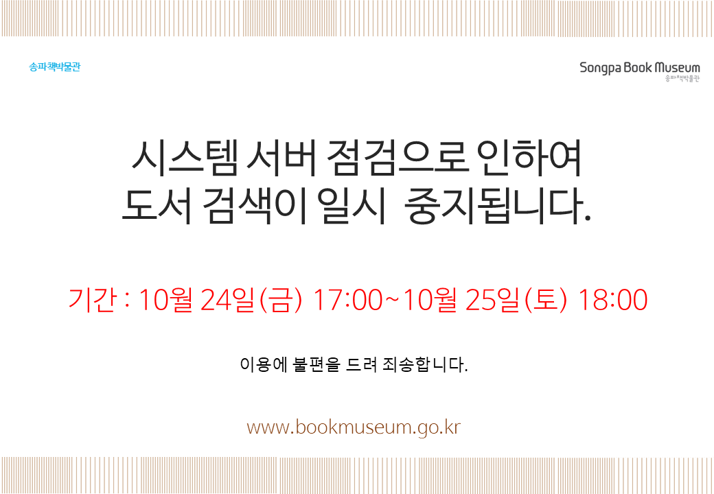송파책박물관 도서검색시스템 일시 중단 안내