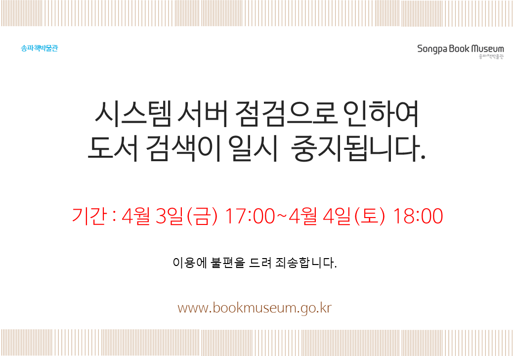 송파책박물관 도서검색시스템 일시 중단 안내