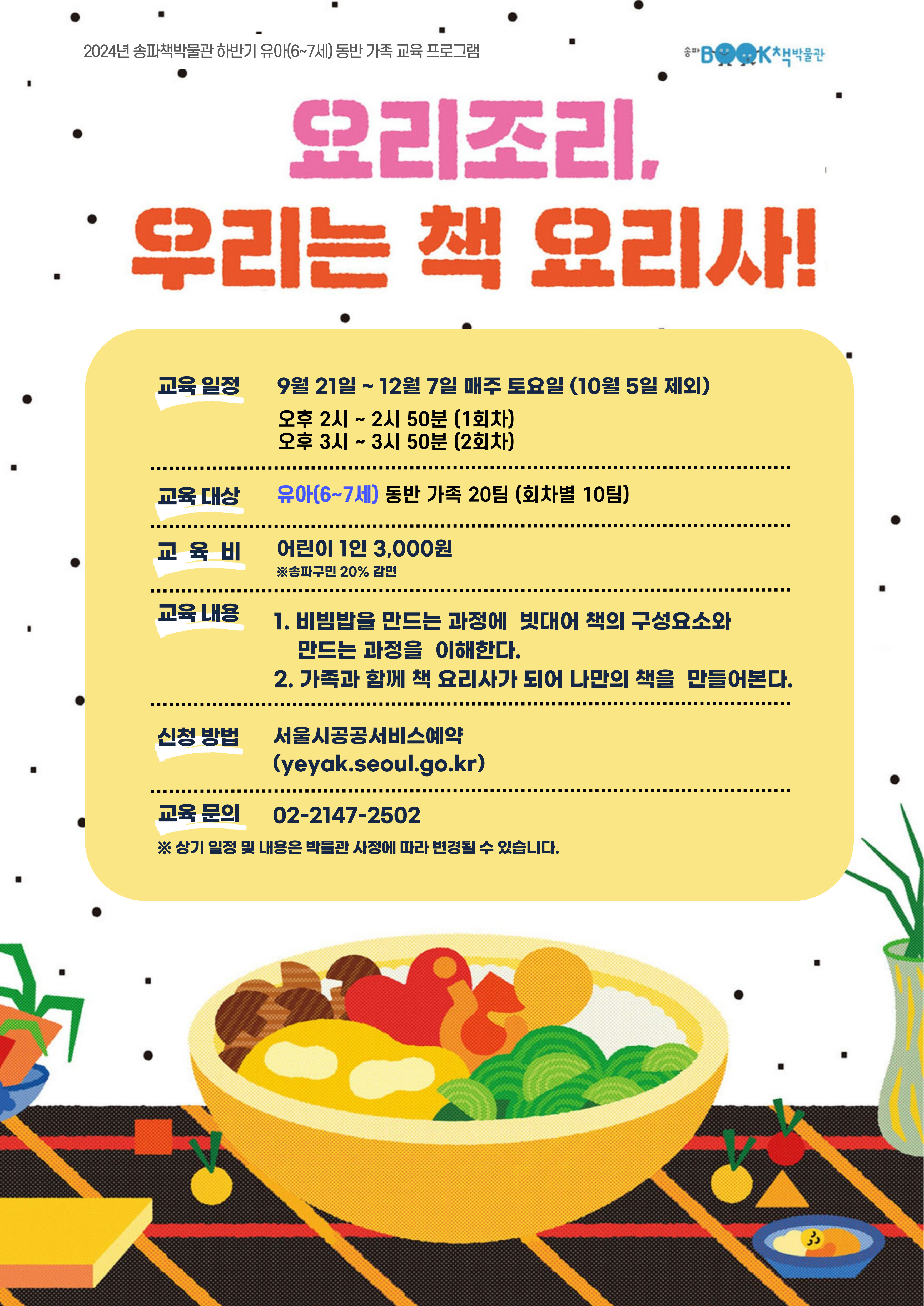<요리조리, 우리는 책 요리사!> 교육 프로그램을 운영합니다.