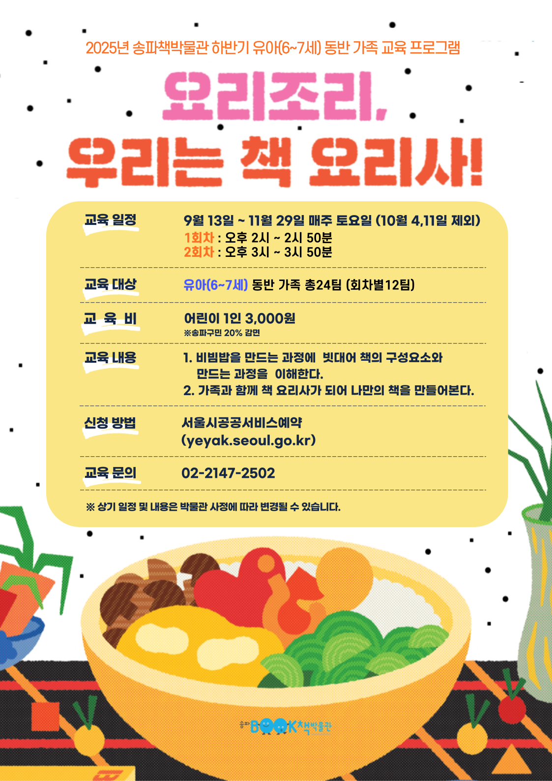 <요리조리, 우리는 책 요리사!> 교육 프로그램을 운영합니다.